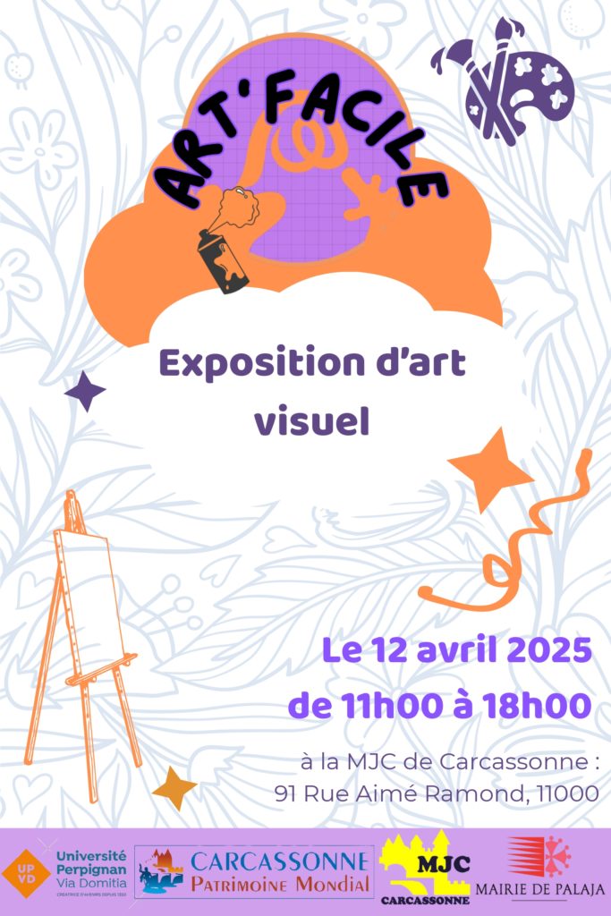 Samedi 12 avril de 11h à 18h, des élèves de l’UPVD, face à la MJC, organisent une exposition dans le cadre d’un projet tutoré. Nous vous invitons toutes et tous à venir découvrir cette exposition éphémère pour échanger avec les artistes présents et pour soutenir nos étudiantes.