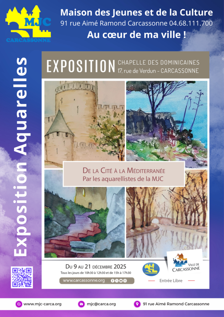Sous ce thème et au travers d’une centaine d’aquarelles, le groupe des aquarellistes de la MJC présente des vues de la Cité et des paysages caractéristiques de la région, abordés de manière assez colorée et figurative mais, parfois également, de manière quasi abstraite.