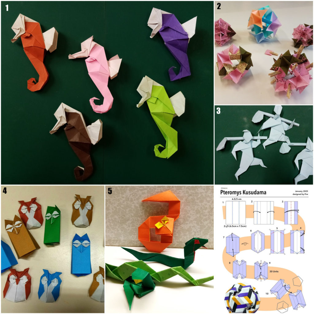 A delà des traditionnels bateaux, cocottes et autres avions, nous explorons les créations d’auteurs contemporains du monde entier en lien avec les principales associations d’origamistes : MFPP (France), BOS (Royaume-Uni), CDO (Italie), AEP (Espagne), JOAS (Japon)…